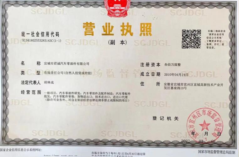 宣城市君誠汽車零部件有限公司 地址:安徽省宣城高新技術產業開發區惠泉路19號